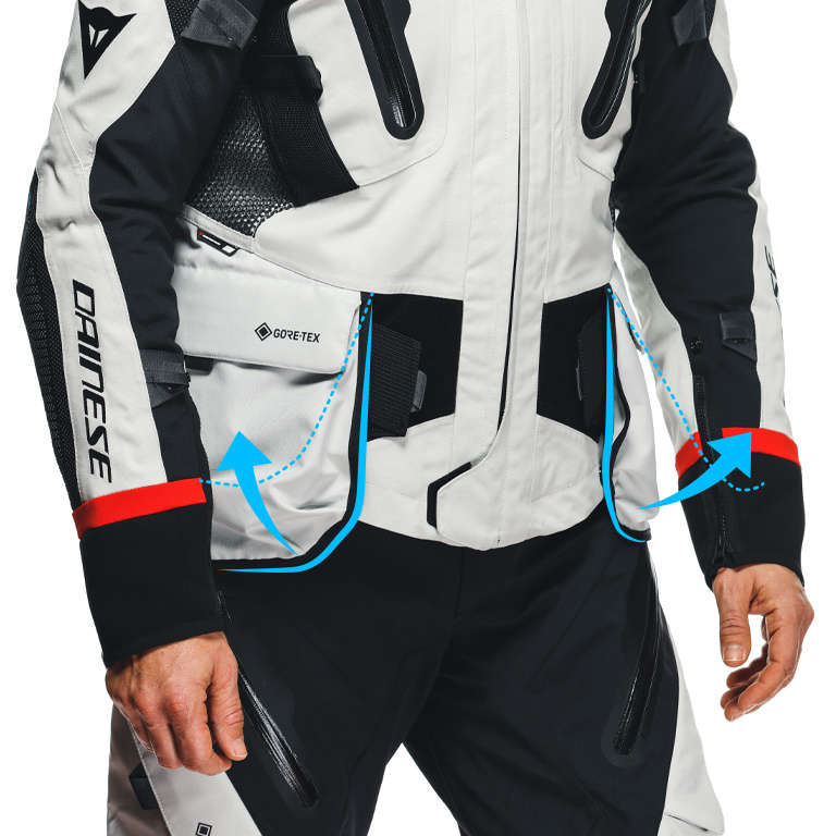 Antartica 2 GORE-TEX® is designed to offer maximum practicality even on the most demanding journeys. Two floating, waterproof side pockets, a large waterproof cargo pocket on the back, and the iconic external G.O. Pockets for the stowing of gloves during short breaks allow the wearer to conveniently store all essential equipment so that it is always close at hand.